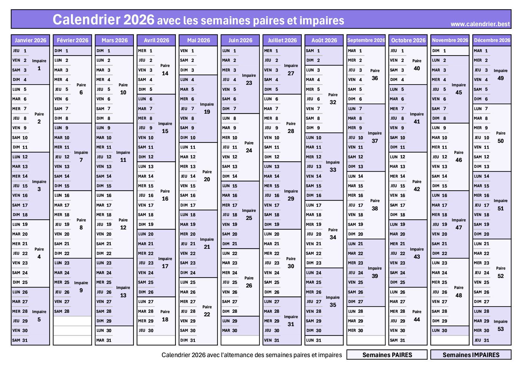 Notre calendrier 2026 COMPLET est téléchargeable gratuitement en version annuelle et semestrielle.